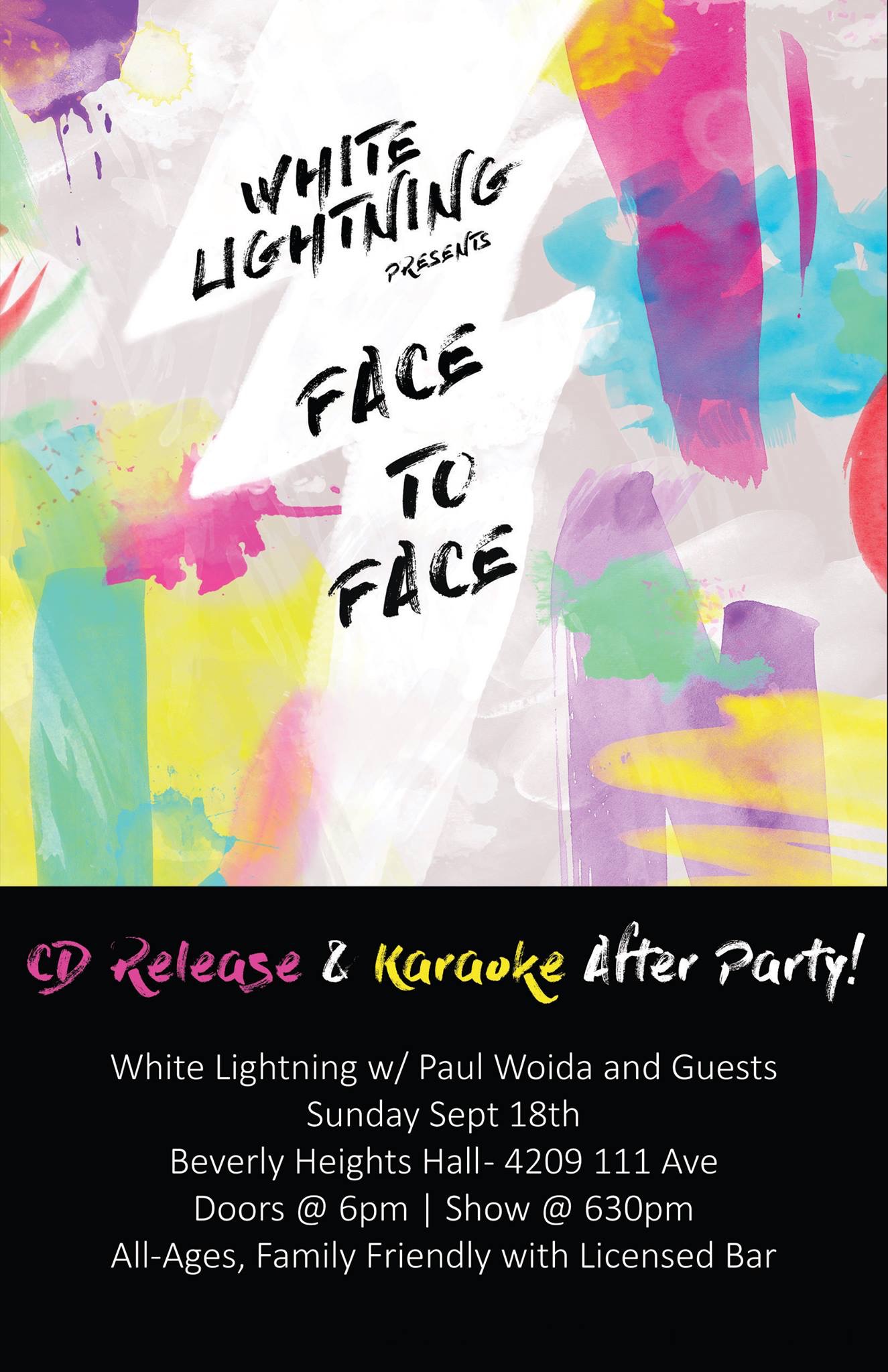 White Lightning is putting on a family friendly all ages CD release show on September 18 at Beverly Heights Community Hall. Paul Woida and Simon Hoskyn are opening the night of music, and there will also be a fun Karaoke after party! Doors open at 6, show at 6:30. Kids 10 and under get in free. Tickets are $12 in advance at yeglive.ca or $15 at the door. More info at whitelightningmusic.com