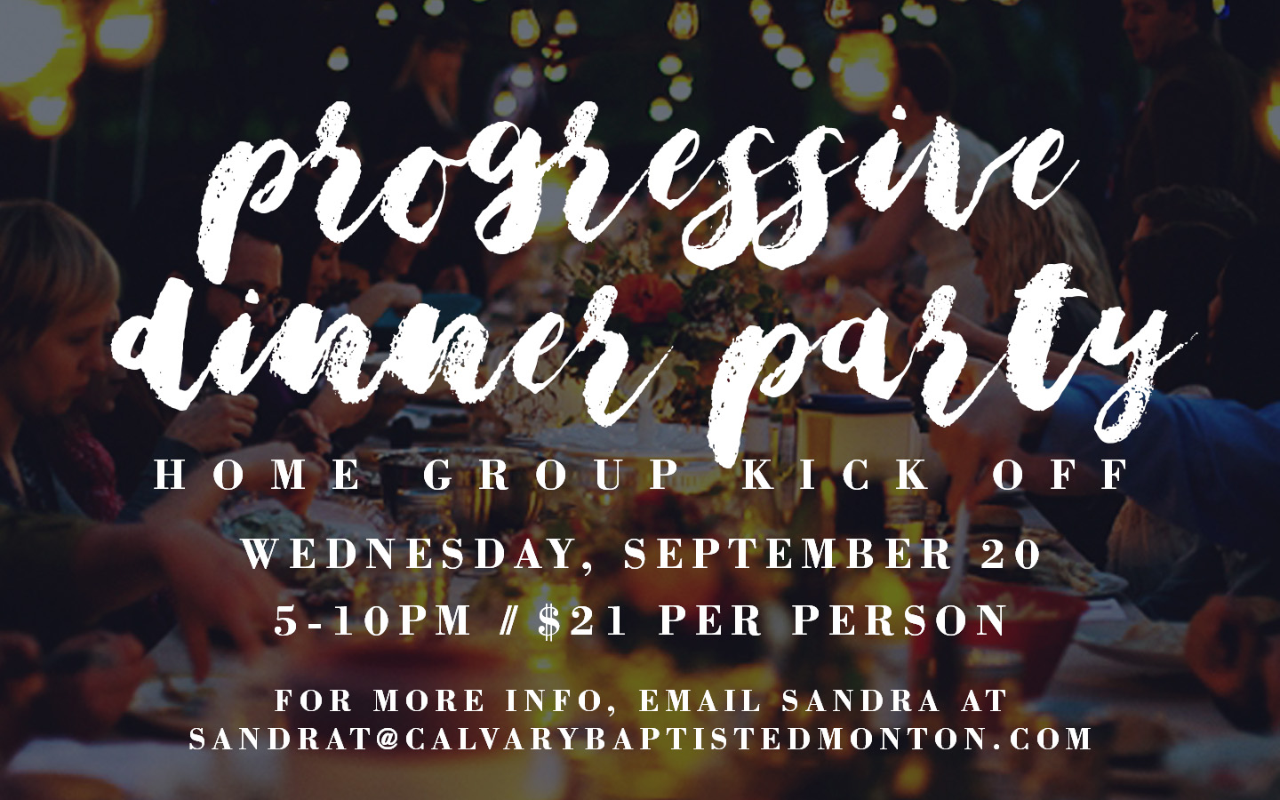 This Fall we're kicking-off home groups with a progressive dinner party! Here's how it'll work: you'll drive around the city to each host home where there will be delicious food waiting for you. If you'd like to get to know the young adults in our church better this is an excellent opportunity as they will be your hosts throughout the night. Space is limited! Buy your tickets through the event website link below. *Please note the change in time as we are now only running one group (formerly group 2).