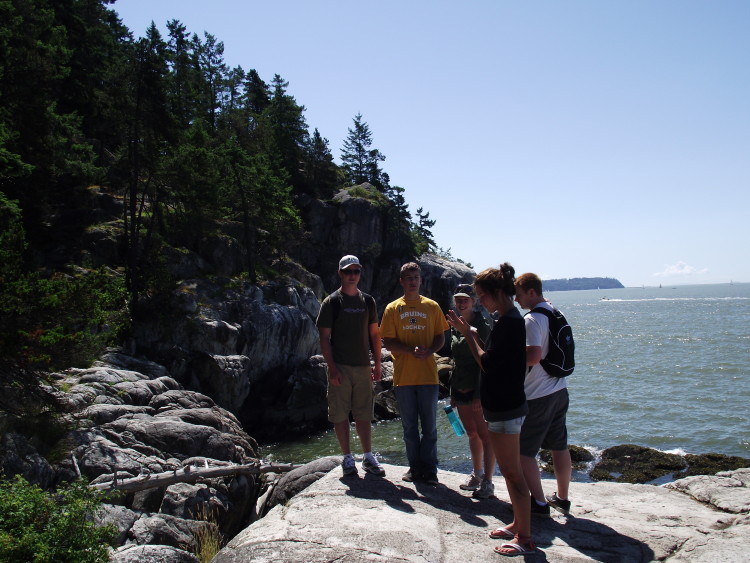 This weekend YWAM has planned fun activities to show us more of Vancouver’s scenery and help us to rest up for the coming week. Today we took a “nature walk” as it was described to us. Therefore, majority of our team wore flip flops…. Now if that was a nature walk, I would hate to see what YWAM calls a hike. Lighthouse Park is a beautiful place if you want to hike; it has rugged terrain with rocky lookouts and lush canopy. It most definitely highlighted the beauty of this coastal city.